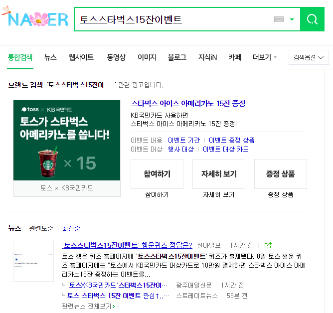 | 토스 스타벅스 15잔 이벤트 (4) | 2019.08.08 |